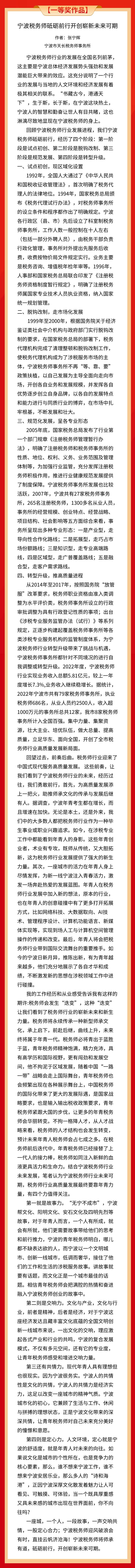 [征文一等奖]宁波税务师砥砺前行开创崭新未来可期